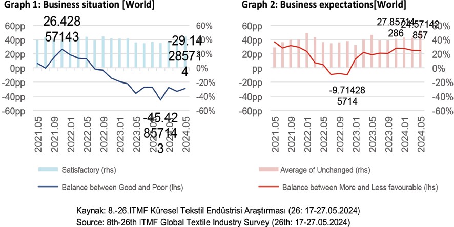 The May 2024 ITMF Global Textile Industry Survey (GTIS) indicates a continued stagnation in the textile business climate, with a marginal improvement of the economic situation dueto more companies deeming business“satisfactory”. On the other hand, business expectations have stagnated inpositive territory for a year, reflecting optimism rather than actual improvement, as the entire supply chain suffers from a lack of orders and high costs that affect profit margins.